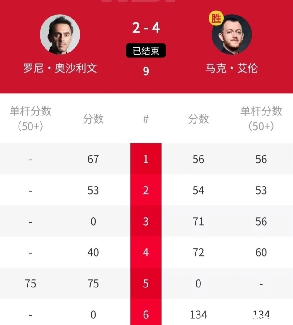 半决赛,艾伦迎战淘汰了丁俊晖的奥沙利文。动作丁俊晖的最大苦主,奥沙利文一碰到丁主任就回电,尽管是在本赛季的景况一般的情况下,亦然稳稳拿握丁主任。